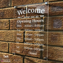 Welcome Come On In Wall Mounted Acrylic Opening Times/Hours Sign made from a premium high quality 4mm thick clear Acrylic Plastic.